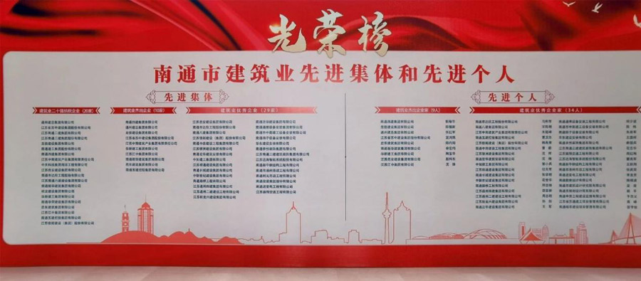 會(huì)議通報(bào)了《全市建筑業(yè)先進(jìn)集體和先進(jìn)個(gè)人名單》,我公司獲評(píng)“南通市建筑業(yè)優(yōu)秀企業(yè)”、董事長張武榮獲評(píng)“南通市建筑業(yè)優(yōu)秀企業(yè)家”光榮稱號(hào)。